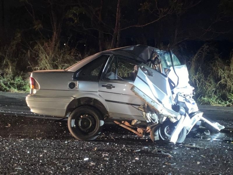 Um homem morreu em um grave acidente na BR-163, em Mercedes. O carro em que ele estava ficou destruído.