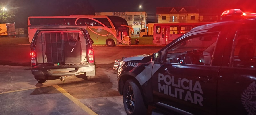 Com o auxílio do cão farejador K9 Bóris, os policiais encontraram um tablete de maconha, pesando 770 gramas, em uma mala preta de rodinhas, que pertencia ao casal. Eles estavam em um ônibus da viação Umuarama, que fazia a linha Umuarama/Cascavel.