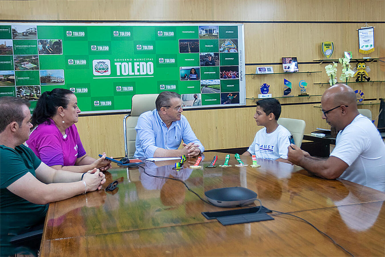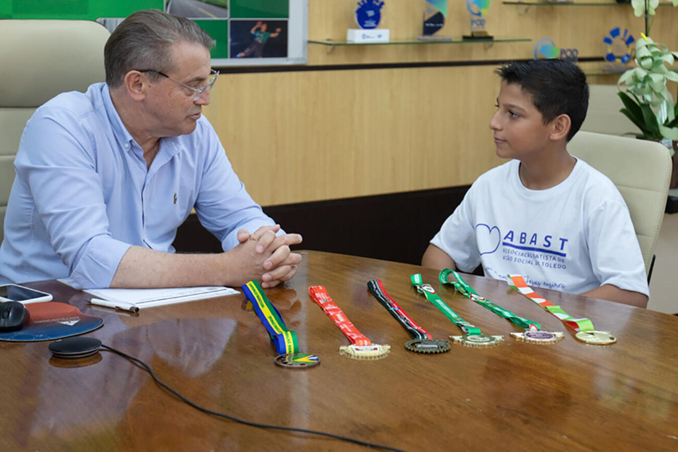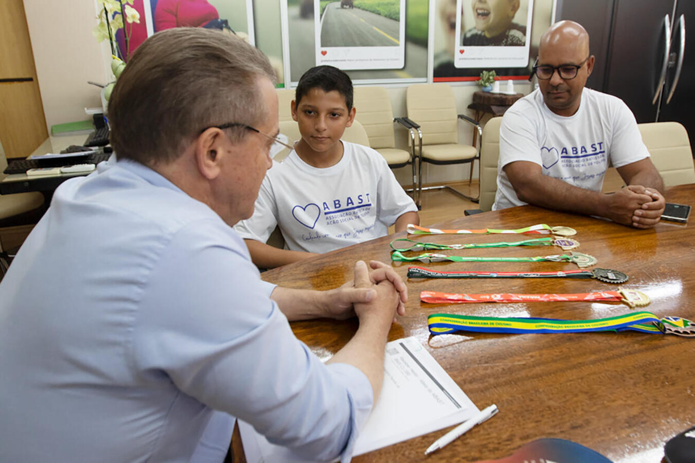 O jovem ciclista Heitor Isaque do Nascimento, de 10 anos, foi recebido pelo prefeito Beto Lunitti na manhã desta quarta-feira. Heitor apresentou ao prefeito as medalhas conquistadas em diversos campeonatos de bicicross, tanto regionais quanto nacionais, nas últimas seis competições.