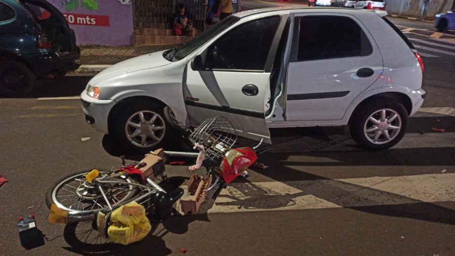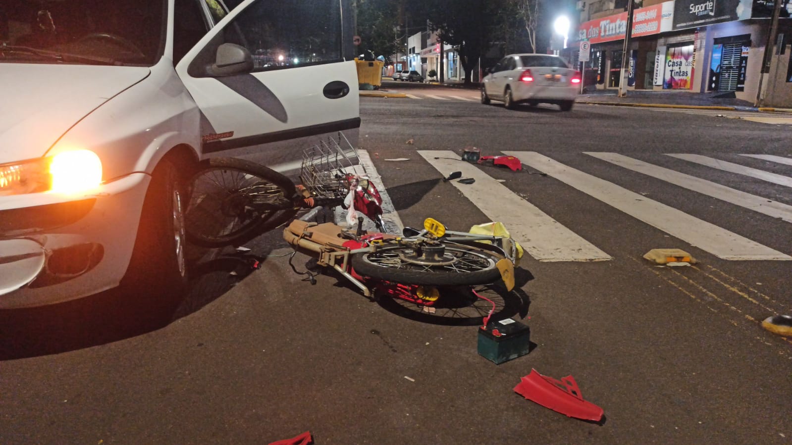 A mulher, de 51 anos, conduzia uma bicicleta elétrica quando foi atingida por um Chevrolet Celta que fazia uma conversão à esquerda para acessar a Rua Luiz Segundo Rossoni. A colisão aconteceu na frontal do carro.