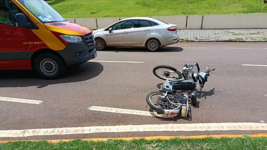 Uma mulher de 57 anos ficou gravemente ferida no início da tarde de quarta-feira (05) após ser atingida por um carro enquanto conduzia uma bicicleta elétrica. O acidente, que ocorreu no centro da cidade, mobilizou equipes do Corpo de Bombeiros, Serviço de Atendimento Móvel de Urgência (Samu) e Polícia Militar (PM).