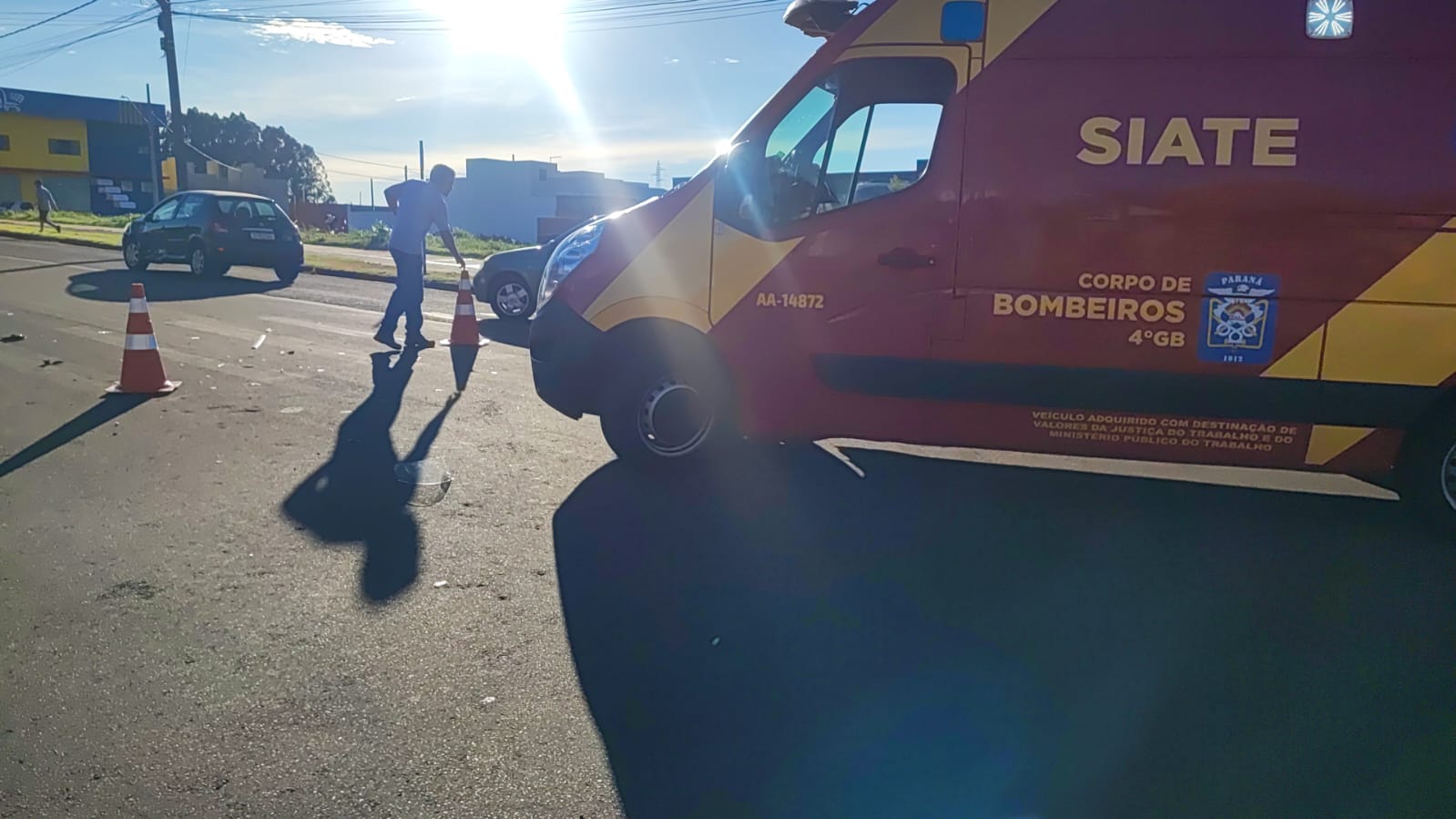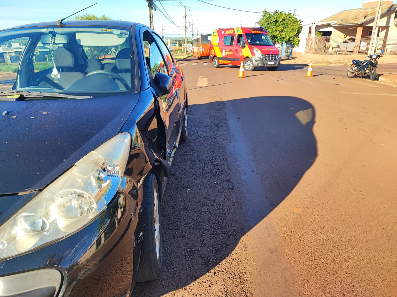 A colisão envolveu um carro Peugeot 206 e uma moto Yamaha Cripton por volta das 07h40min.