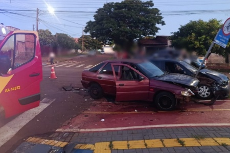 Um acidente de trânsito envolvendo uma motocicleta e um carro deixou uma mulher de 29 anos ferida na tarde desta quarta-feira (30), na Rua Dom Pedro II, no Centro de Toledo.