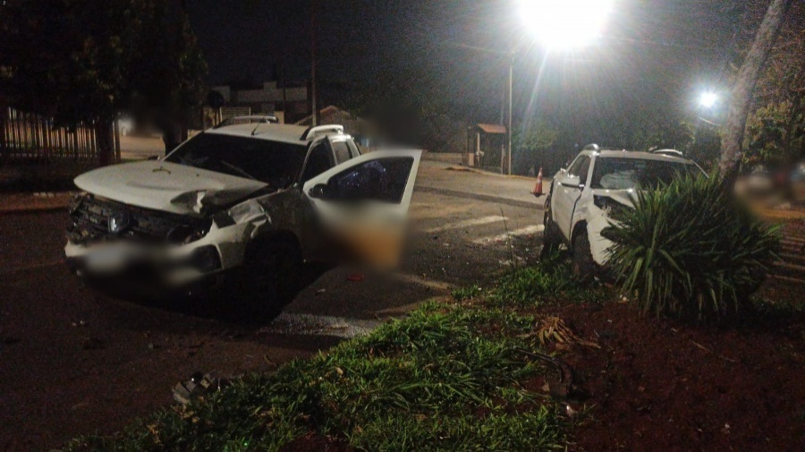 A colisão envolveu uma caminhonete Renault Oroch, uma caminhonete Fiat Toro e um Renault Sandero.