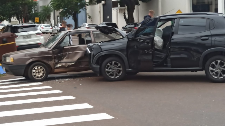Uma colisão entre dois carros na região central de Toledo deixou uma ferida na manhã desta terça-feira (14). O acidente aconteceu no cruzamento da Rua Sarandi com a Rua Haroldo Hamilton, próximo à Câmara Municipal.