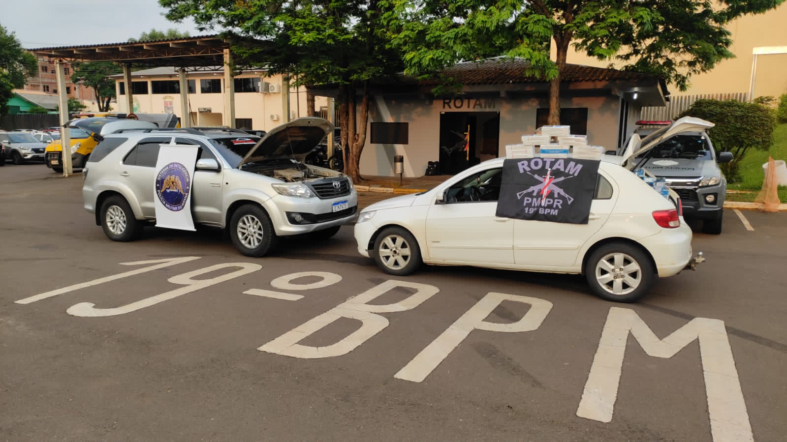 A ação foi desencadeada após a PM receber denúncias anônimas de que havia dois veículos suspeitos no local, sendo um VW/Gol branco e uma Hilux SW4 prata, que possivelmente estariam carregados com produtos contrabandeados do Paraguai. As equipes da Rotam e do serviço de inteligência do 19º BPM fizeram diligências para confirmar as informações e localizar os veículos.