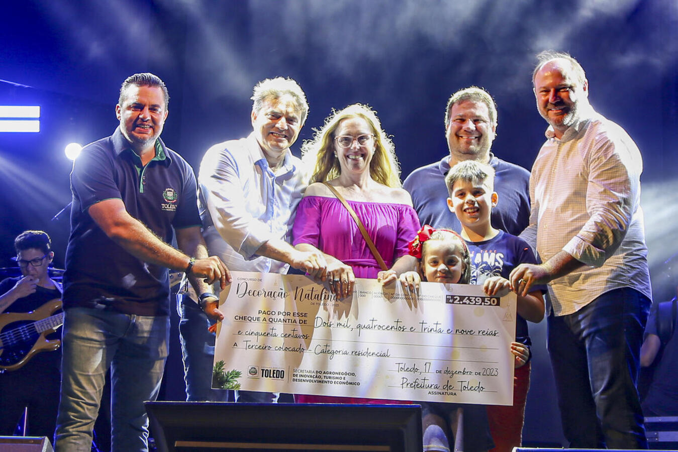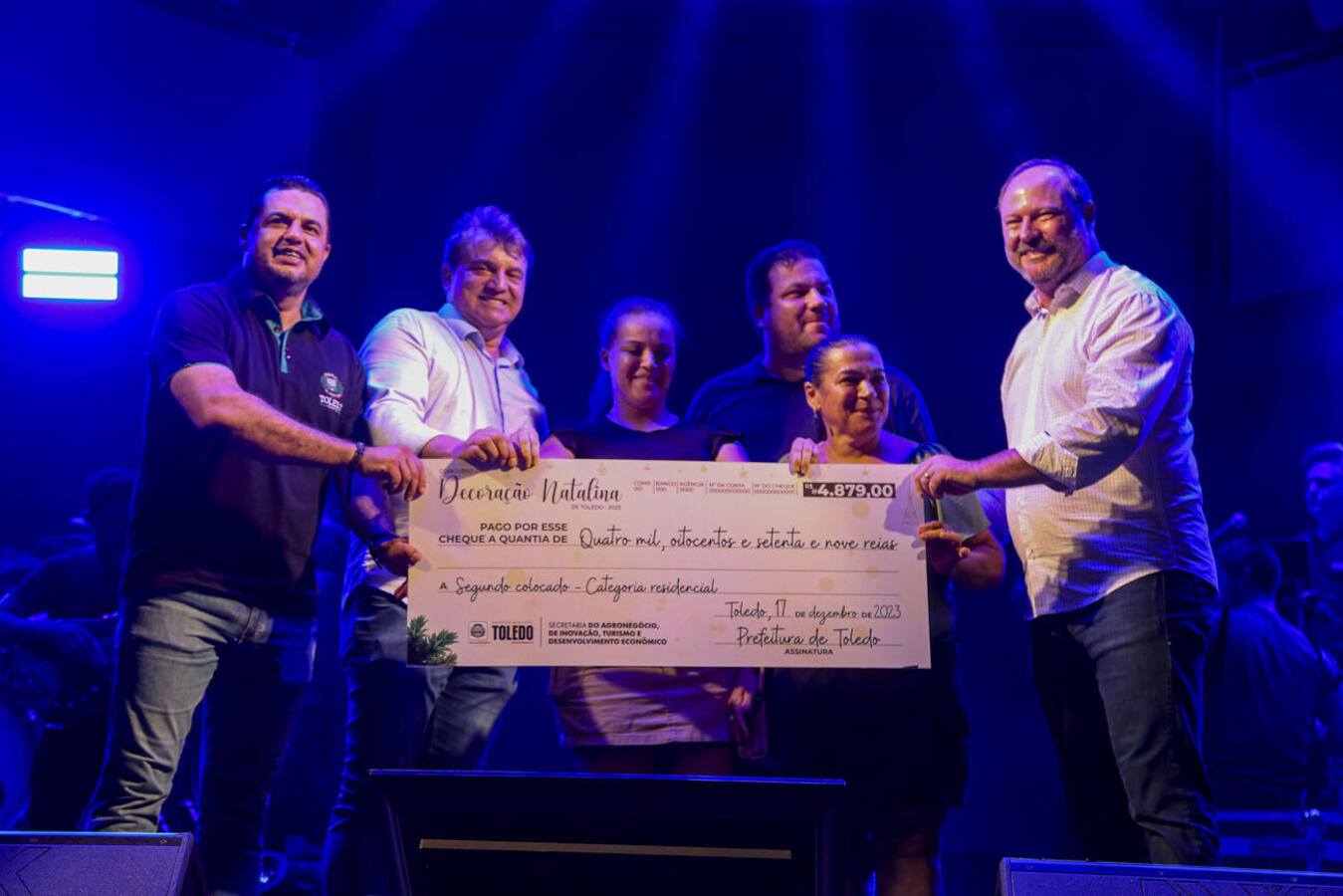 A Prefeitura de Toledo, por meio da Secretaria do Agronegócio, de Inovação, Turismo e Desenvolvimento Econômico (Agrodesenvolvimento), realizou neste domingo (17) a entrega dos prêmios do Concurso de Decoração Natalina 2023. O evento aconteceu no Parque Ecológico Diva Paim Barth, durante as comemorações dos 71 anos de emancipação política do município.