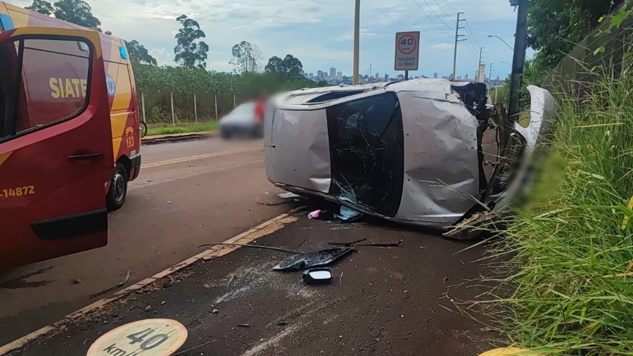 O condutor, em alta velocidade, ignorou o cruzamento com Avenida Egydio Geronymo Munaretto e atingiu o canteiro central, “decolando” para o outro lado da pista.