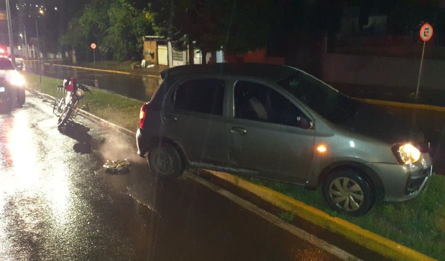 30 minutos depois, outro acidente, desta vez na Avenida Maripá. Um motociclista que trafegava na contramão colidiu com um Toyota Etios. O Corpo de Bombeiros prestou os primeiros ao motociclista de 42 anos, que resultou com ferimentos leves, mas dispensou encaminhamento médico.