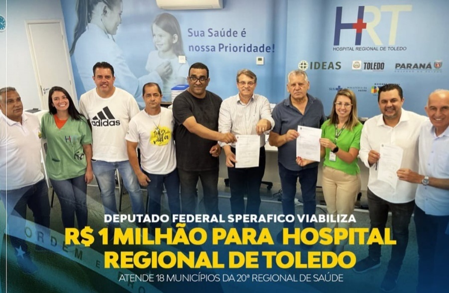 O Hospital Regional de Toledo (HRT), que atende os 18 municípios da 20ª Regional de Saúde de Toledo pelo Sistema Único de Saúde (SUS), recebeu uma boa notícia no final do ano: o deputado federal Dilceu Sperafico anunciou a destinação de R$ 1 milhão para a instituição. O valor é proveniente do Ministério da Saúde e já foi encaminhado à Secretaria de Estado da Saúde do Paraná (Sesa).