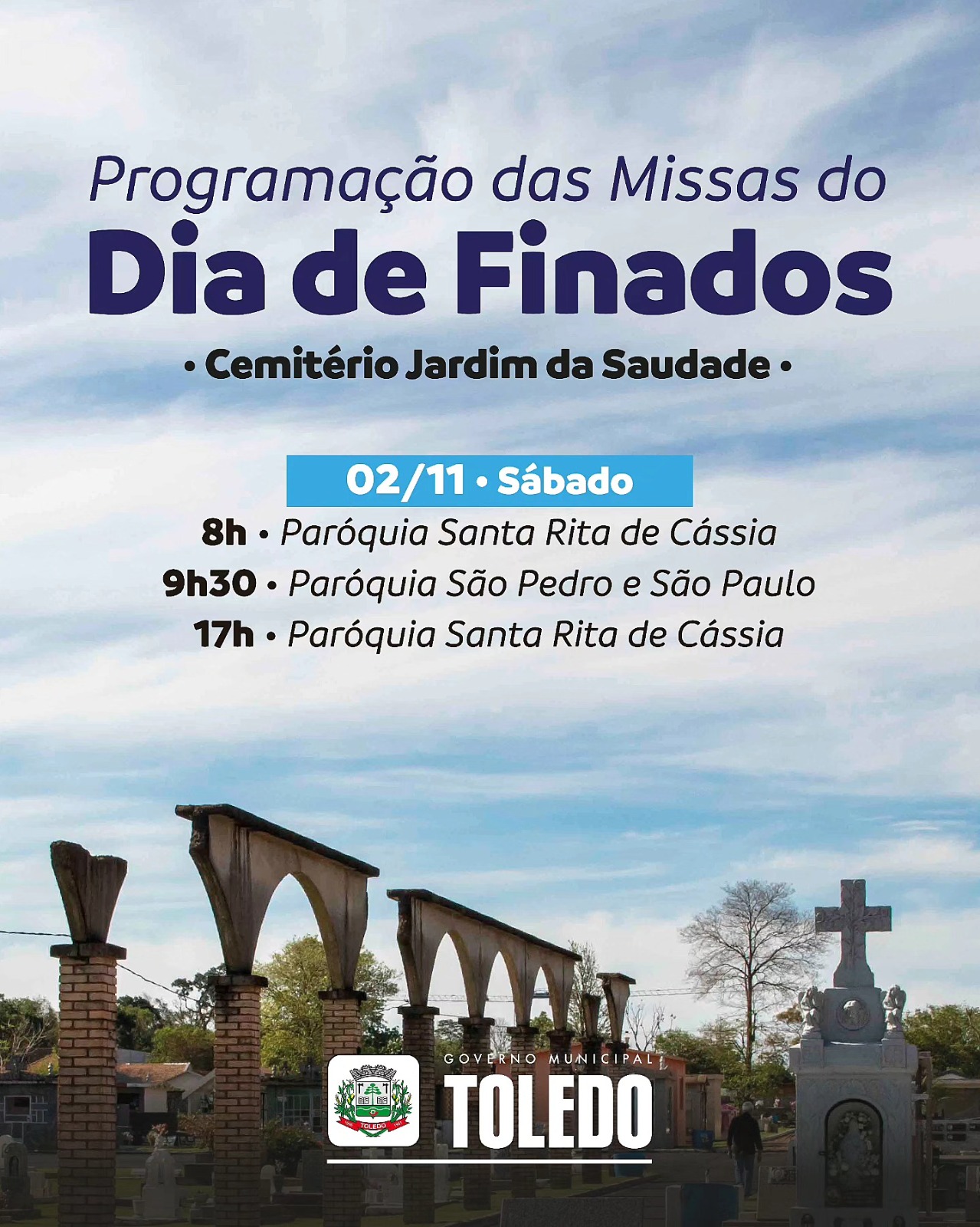A cidade de Toledo já está pronta para as celebrações do Dia de Finados, que ocorre neste sábado, 02 de novembro, com uma programação completa de missas e medidas para acolher os visitantes que homenagearão entes queridos. As cerimônias acontecerão nos cemitérios Cristo Rei e Jardim da Saudade, com apoio de diversas secretarias municipais para garantir segurança e conforto durante as visitas.