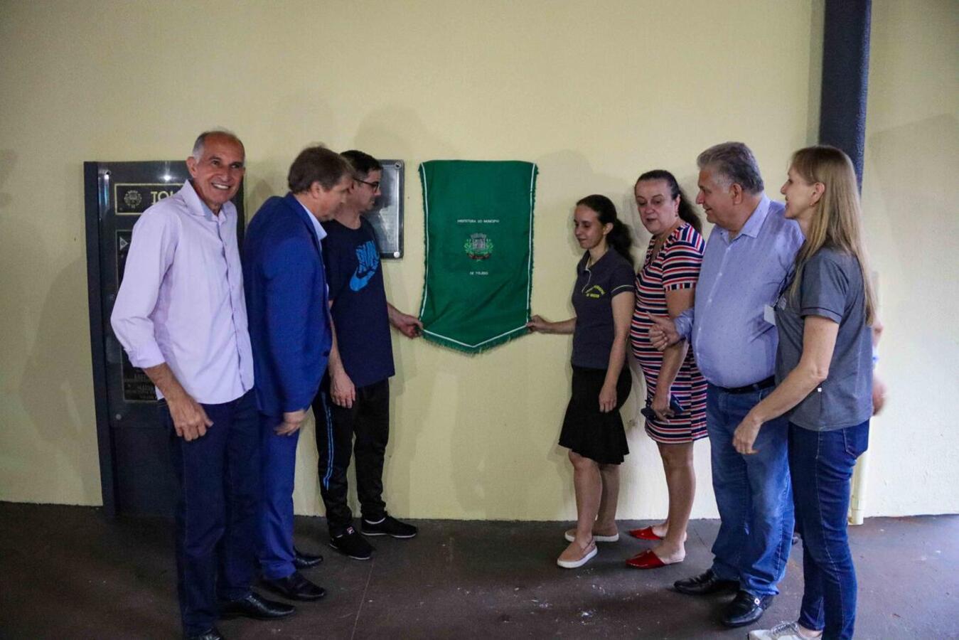 A Escola Municipal Ivo Welter, no Jardim Santa Clara IV, recebeu uma reforma completa, entregue pela Prefeitura de Toledo na última terça-feira (28). A solenidade contou com a presença do prefeito Beto Lunitti, da secretária de Educação, Marli Gonçalves Costa, do diretor da Agência do Trabalhador, Rodrigo Souza, dos vereadores Damião Santos e Pedro Varela, da equipe da Secretaria de Educação (Smed) e da comunidade escolar.