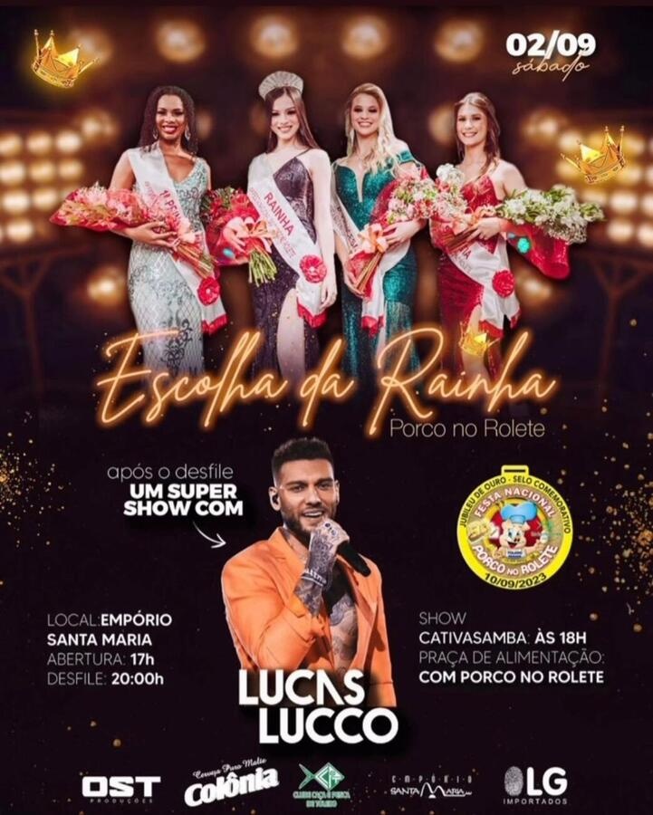 O evento começa às 17h00, com o show do grupo Cativa Samba às 18h00. Às 20h00, as candidatas desfilam no palco do Empório. Em seguida, o cantor Lucas Lucco faz sua terceira apresentação no local, com seus maiores sucessos. O público também poderá saborear o porco no rolete na praça de alimentação do Empório.
