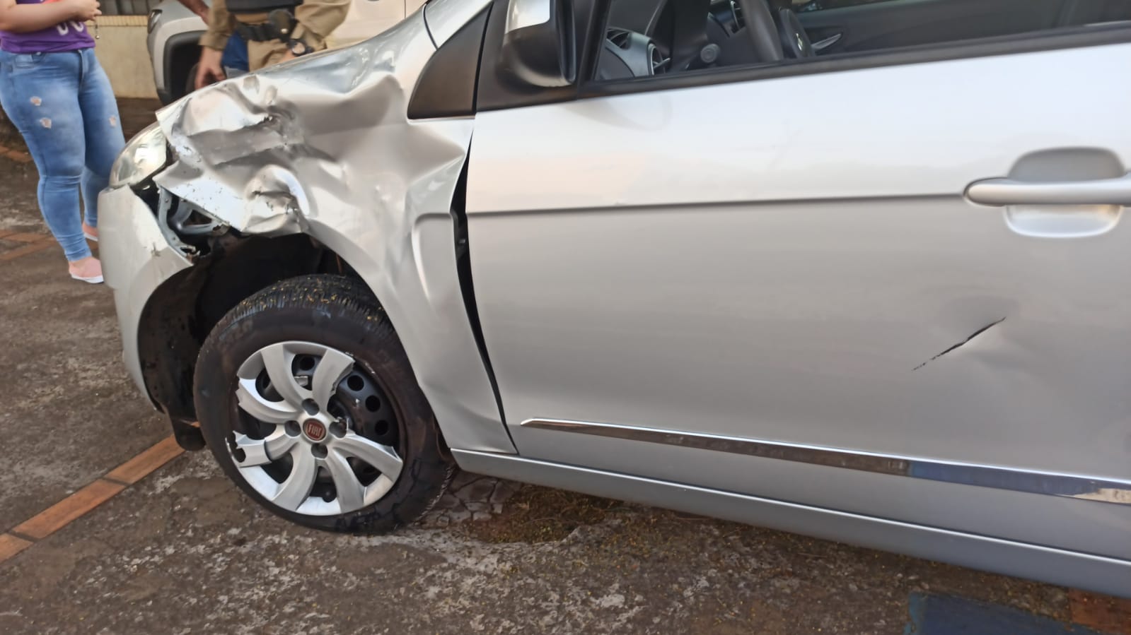 Um jovem de 23 anos ficou ferido após um acidente entre um carro e uma moto no cruzamento da Rua Carlos Barbosa com a Rua Santo Campagnolo, no bairro Vila Industrial, em Toledo, no início da manhã desta segunda-feira (09).