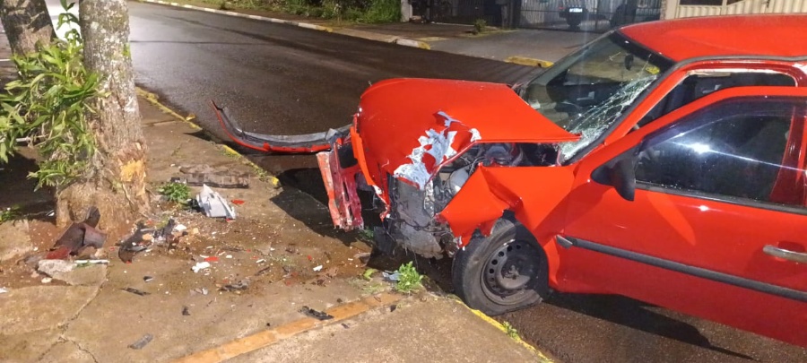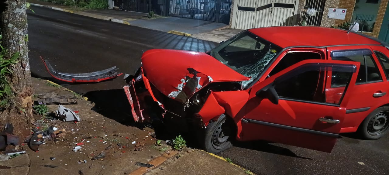 Um veículo VW Gol foi encontrado colidiu com uma árvore na madrugada de sábado (02) no Jardim Coopagro.