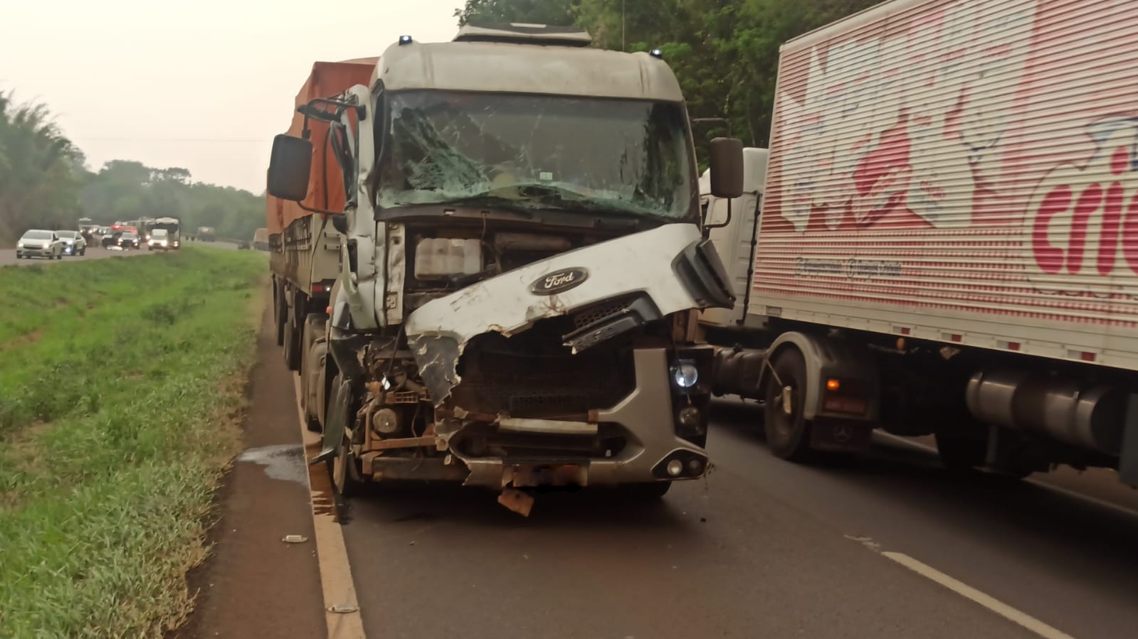 O condutor da carreta, que parou na pista contrária após a batida, não se feriu.