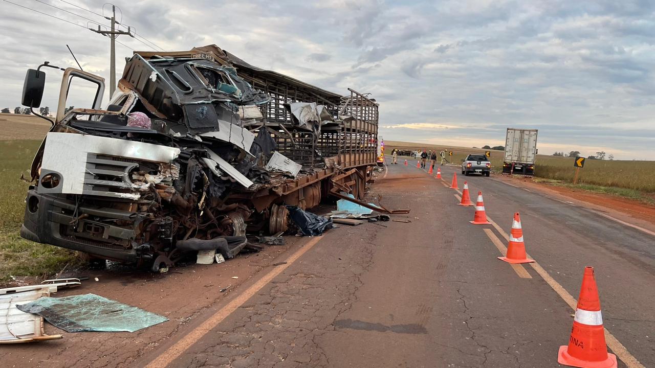 De acordo com informações preliminares, o caminhão de porcos, que seguia sentido Palotina, colidiu frontalmente com a carreta container, que trafegava no sentido contrário. A violência da colisão provocou o tombamento da carreta container.