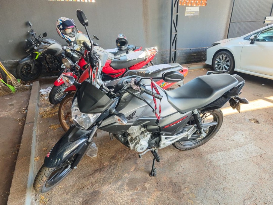 No ponto indicado, os agentes encontraram uma Honda CG Start 160, de cor cinza, caída às margens do rio e próxima a uma área de vegetação. Durante a verificação, foi identificado que a motocicleta possuía registro de furto.