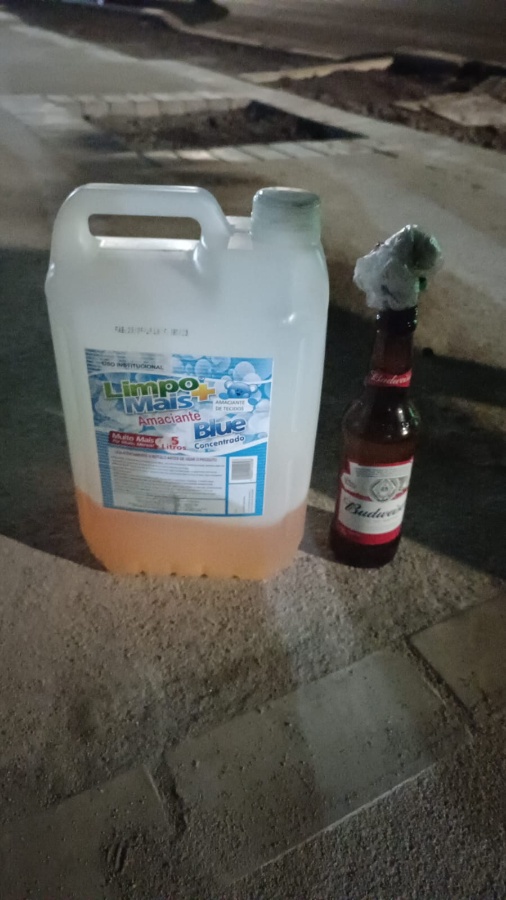 A PM recolheu um coquetel molotov e um galão com líquido semelhante a gasolina, mas não conseguiu localizar o suspeito.