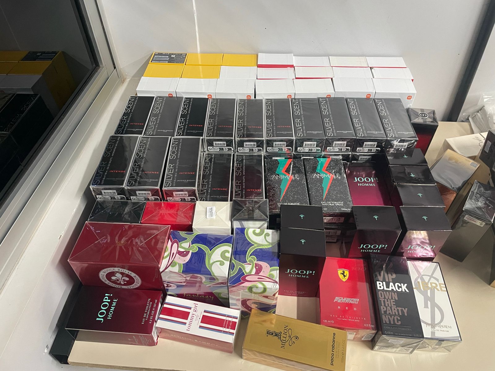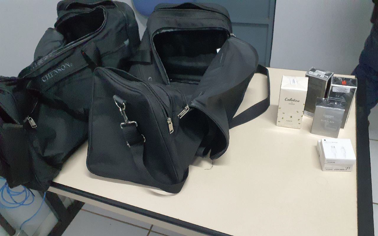 Entre os itens apreendidos, estavam 21 smartphones de diferentes marcas, 113 perfumes de marcas variadas, um aparelho para transformar TV em smart, fones de ouvido da marca Apple e um relógio genérico.