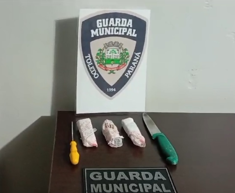 Durante a revista pessoal, nada de ilícito foi encontrado com o indivíduo. No entanto, a busca em seus pertences resultou na apreensão de três porções de substância análoga à maconha, uma faca e uma chave de fenda.