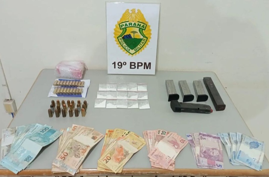 A Polícia Militar prendeu um homem em Toledo por tráfico de drogas e posse ilegal de munição de uso restrito, na noite de segunda-feira (15).