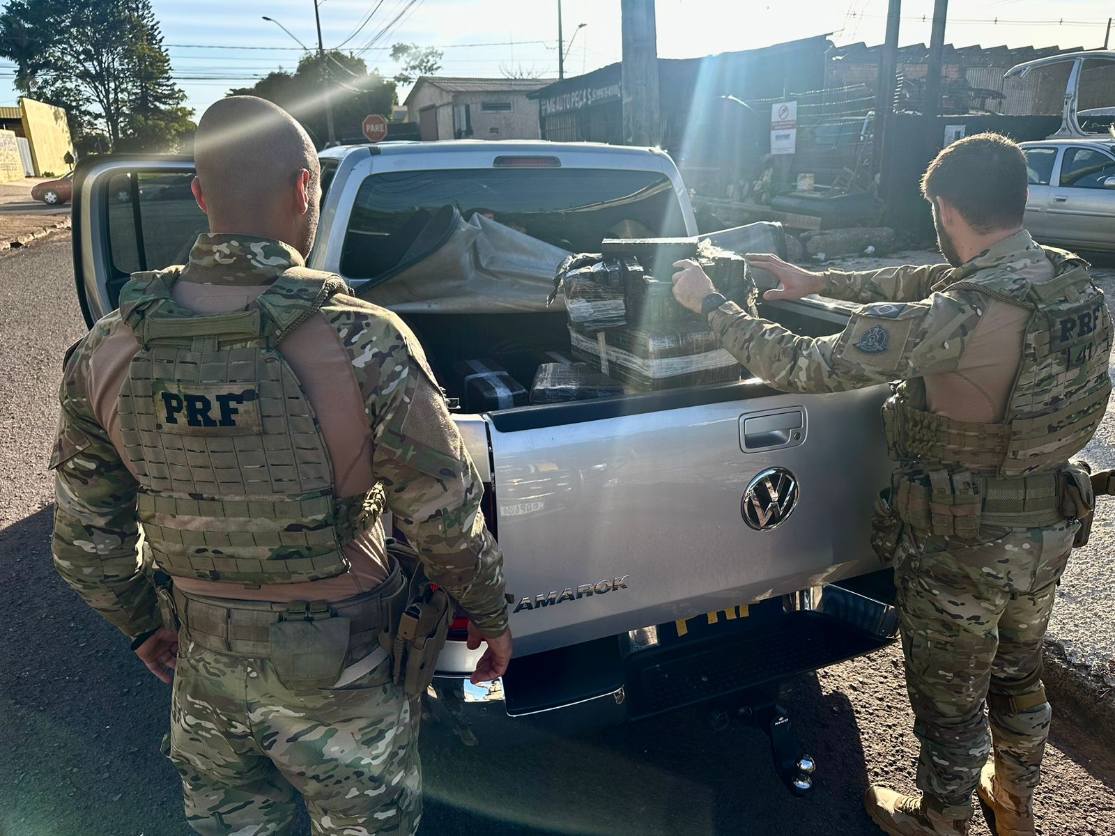 A droga estava escondida em uma camionete Amarok, que foi avistada pela PRFna BR 467, após o setor de inteligência do 19º BPM de Toledo monitorar o veículo.