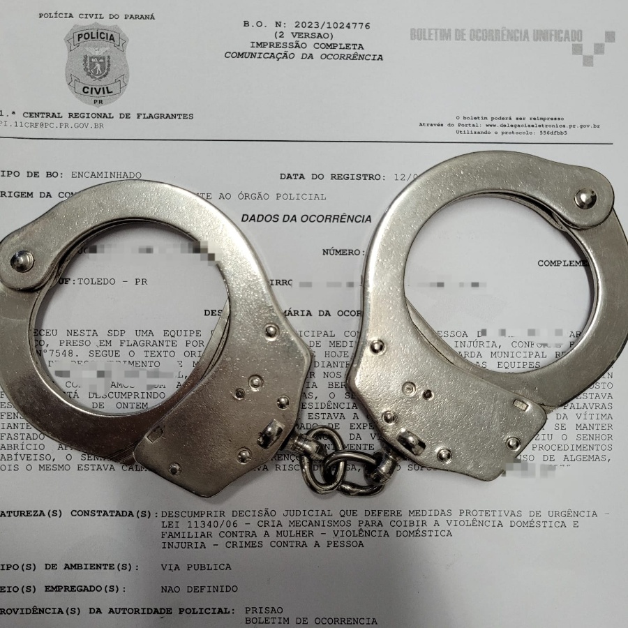 Um homem foi detido pela Guarda Municipal de Toledo por descumprir uma medida protetiva e injuriar sua ex-companheira, nesta terça-feira (12).
