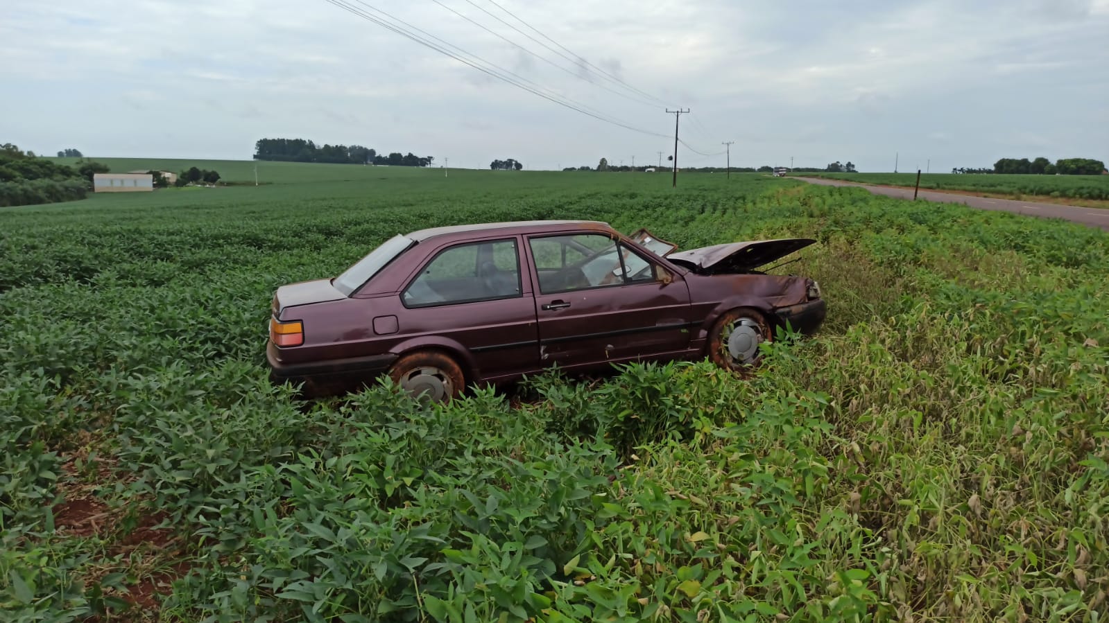 Na manhã desta quarta-feira (20), um carro capotou na estrada que vai de Toledo para Novo Sobradinho. O motorista era um rapaz de 21 anos que dirigia um Volkswagen Santana de Toledo.