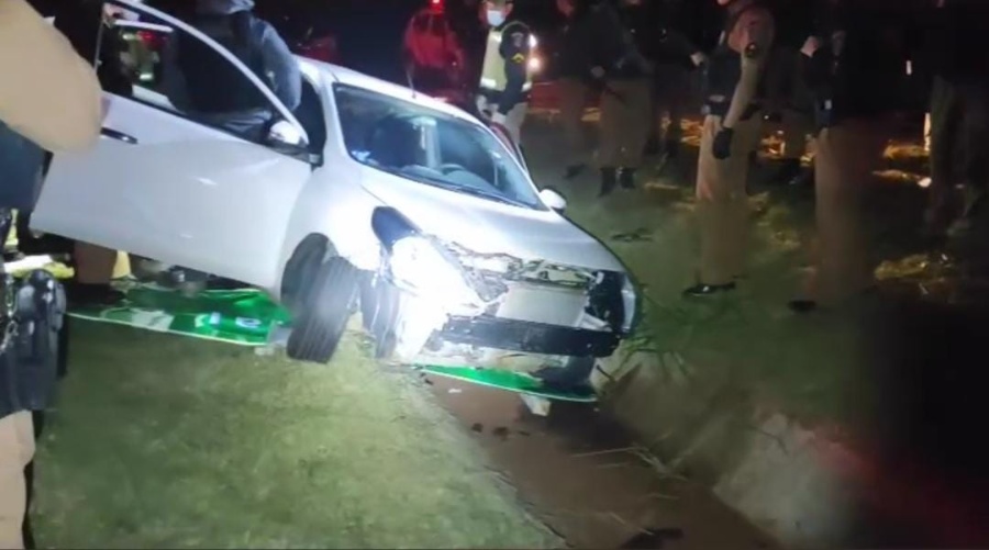 Pouco depois, o assaltante perdeu o controle do carro e bateu em um canteiro. Os policiais constaram que ele havia sido baleado. Equipes do Corpo de Bombeiros e do SAMU foram acionadas, mas apenas constaram o óbito do indivíduo.