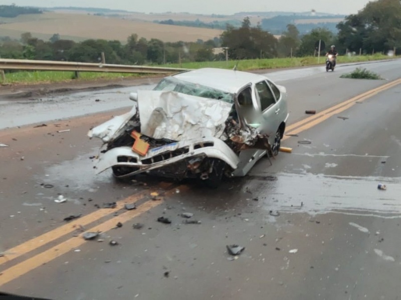 O carro, que seguia sentido Guaíra, teria invadido a pista contrária e colidiu no rodado do veículo de carga, que trafegava pela terceira pista. O acidente aconteceu nas proximidades do radar da Dalmina.