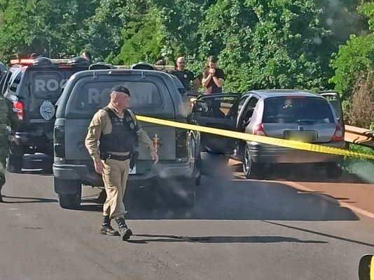 Um confronto armado entre Policiais Militares da ROTAM de Toledo e dois indivíduos em um veículo Renault Clio terminou com a morte dos ocupantes na tarde desta quarta-feira (23), na rodovia BR-467, próximo ao Rio Lopei, entre Toledo e Cascavel.