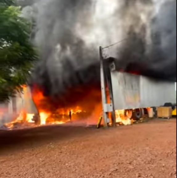 Conforme o Corpo de Bombeiros, fogo atingiu um barracão onde haviam vários ferramentas, equipamentos e máquinas agrícolas. Quando os militares chegaram para combater o incêndio, o fogo já havia consumido todo o barracão.