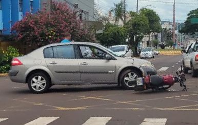 Um acidente de trânsito no centro de Toledo, envolvendo um carro e uma moto, deixou um jovem de 19 anos com ferimentos moderados.
