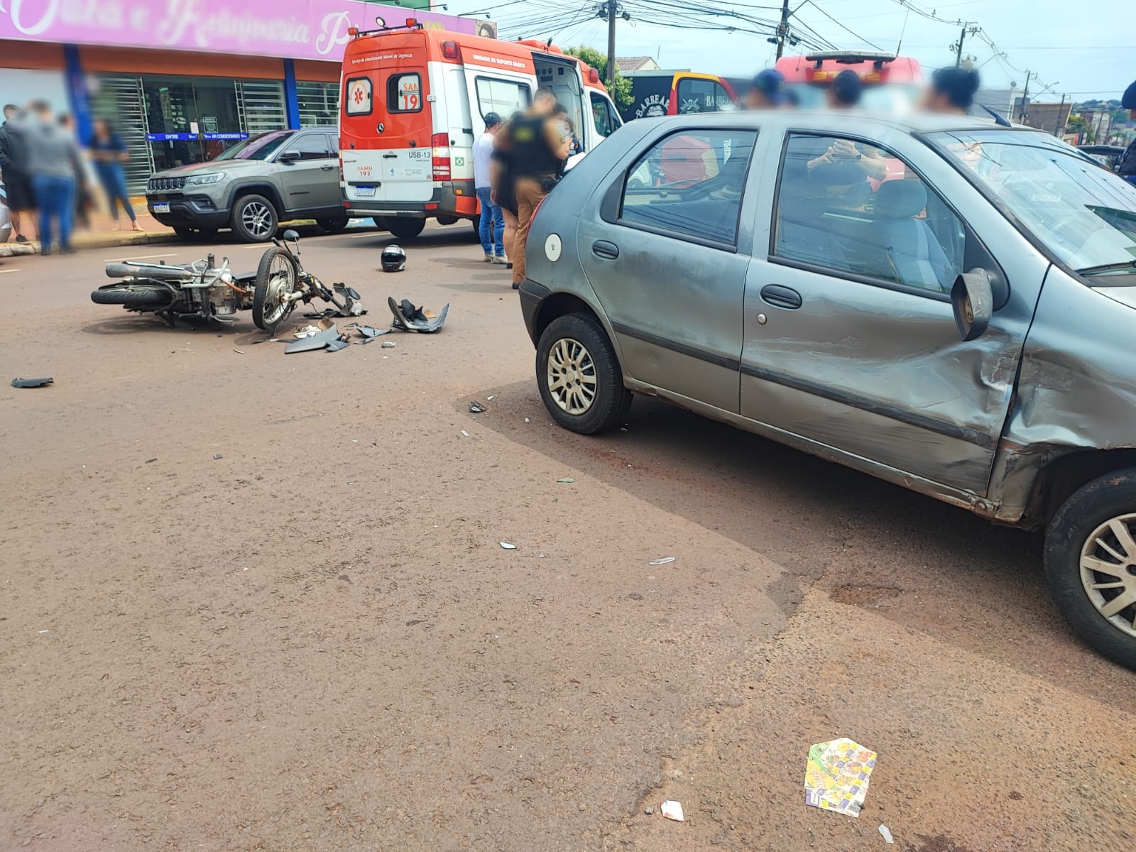 Conforme as informações apuradas no local, o motociclista seguia em direção à Avenida Maripá, momento em que atingiu o carro, que saiu do estacionamento e atravessou a pista para acessar a Rua Capitão Índio Bandeira.