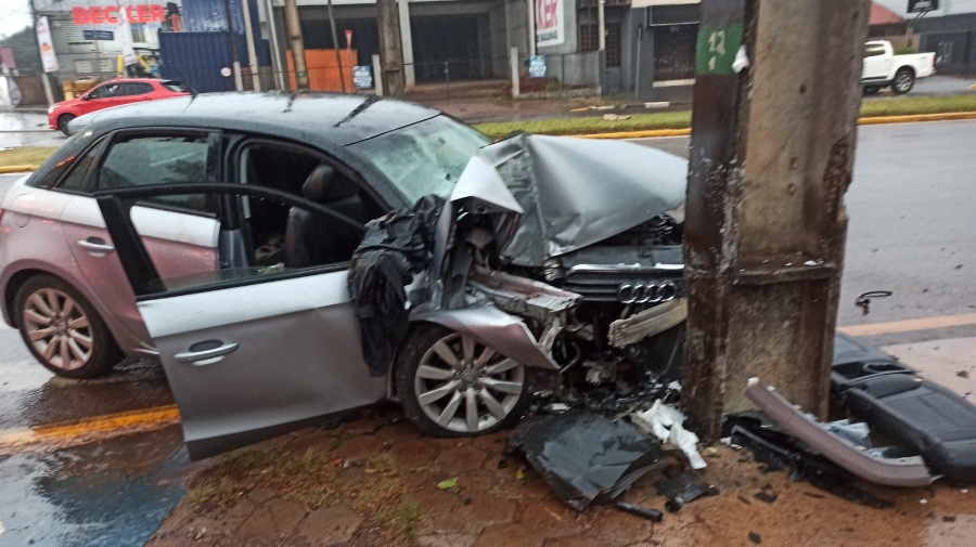 O veículo Audi em os jovens estavam colidiu contra um poste de energia na rotatória da Avenida Ministro Cirne Lima com a Rua Guarani, na Vila Becker, por volta das 5h30.