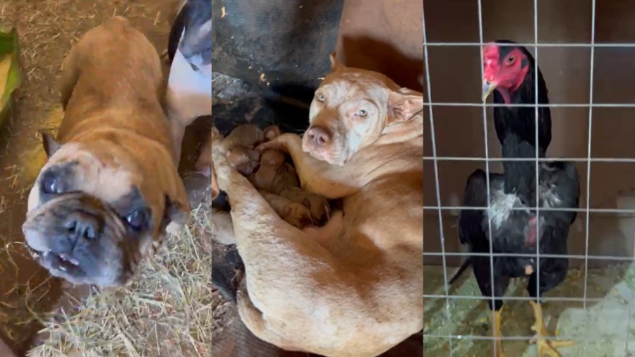 Mais de 70 animais foram encontrados em situação insalubre em uma propriedade ligada ao suspeito, incluindo cães debilitados, aves silvestres mantidas ilegalmente e galos de rinha mutilados. A polícia também encontrou estruturas e equipamentos para a prática de rinhas.