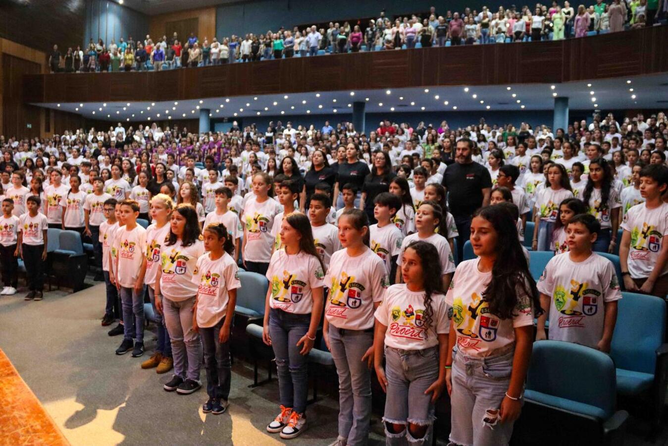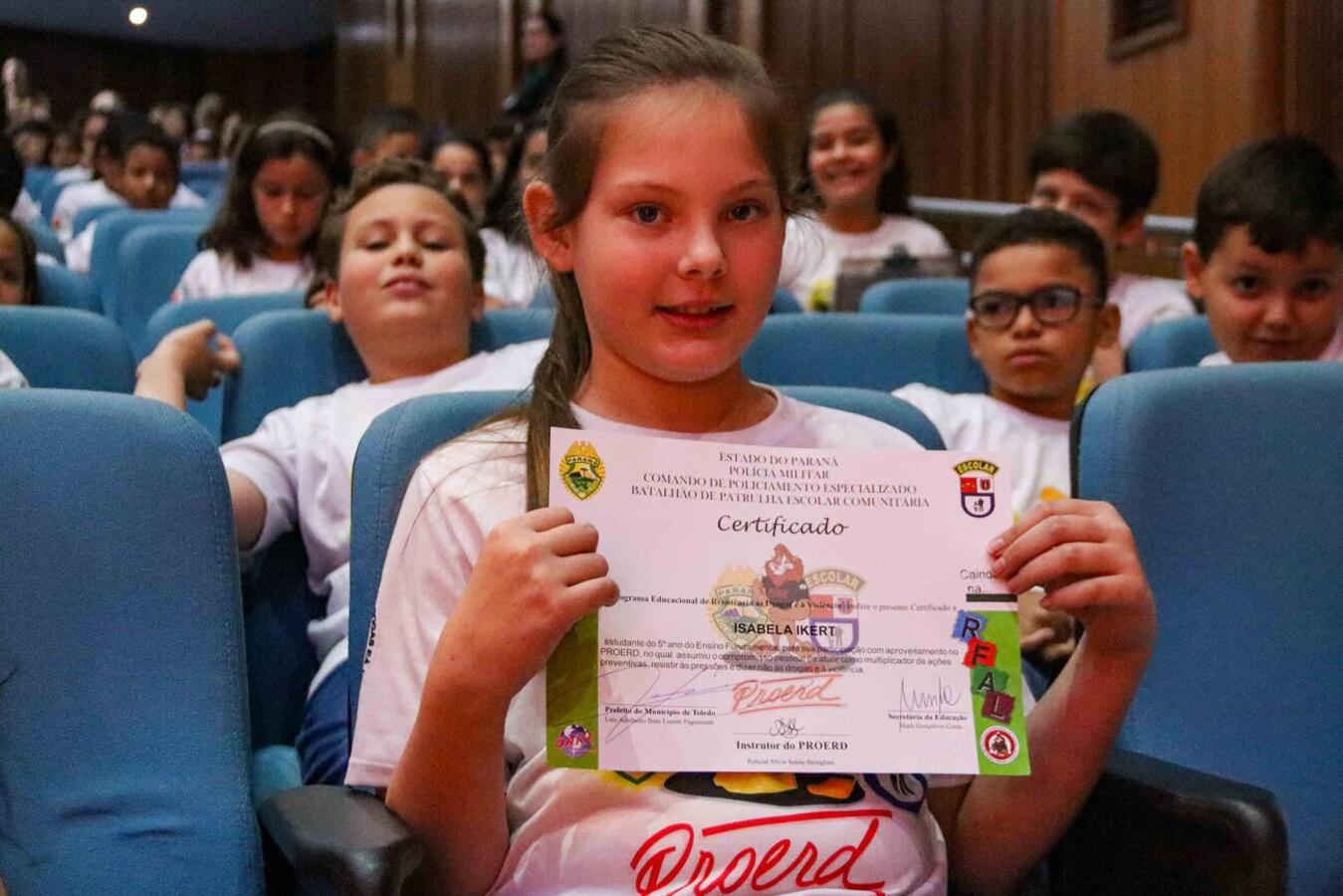 O Programa Educacional de Resistência às Drogas e à Violência (PROERD) formou mais uma turma de estudantes do 5º ano do Ensino Fundamental em Toledo, na última quarta-feira (29). As cerimônias aconteceram no Teatro Municipal e contaram com a participação de mais de 600 alunos de cada vez, totalizando cerca de 2.040 formandos de 11 escolas da rede pública e privada.