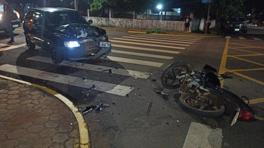 Na noite desta quarta-feira (10), um acidente envolvendo um Fiat Uno e uma motocicleta Honda CG Titan 150 cilindradas deixou um saldo de uma pessoa ferida. A colisão aconteceu na Rua São João esquina com a Rua General Estilac Leal, no Centro de Toledo.