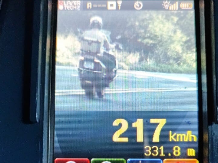 A velocidade máxima permitida no local é de 100 km/h para automóveis e 90 km/h para caminhões. No entanto, um motociclista foi flagrado a 217 km/h, ultrapassando em mais de 100 km/h o limite permitido.