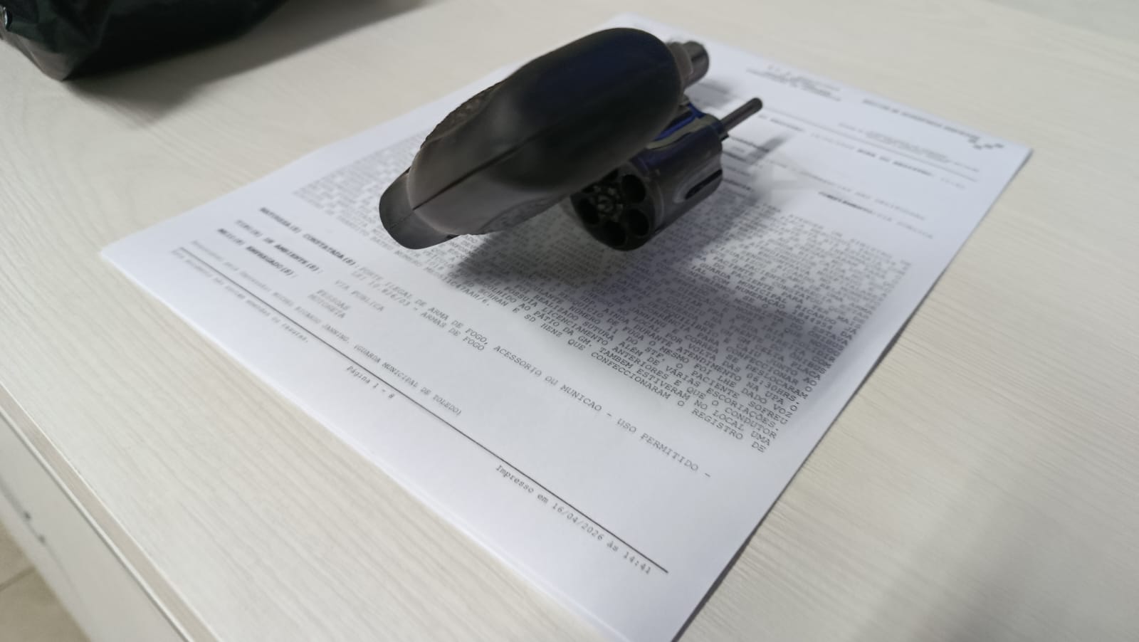 O homem foi encontrado desacordado e recebeu atendimento do SAMU. Durante os procedimentos, a equipe localizou um revólver calibre .38 da marca Taurus na cintura do motociclista, sem munições, sendo a arma repassada à Guarda Municipal.