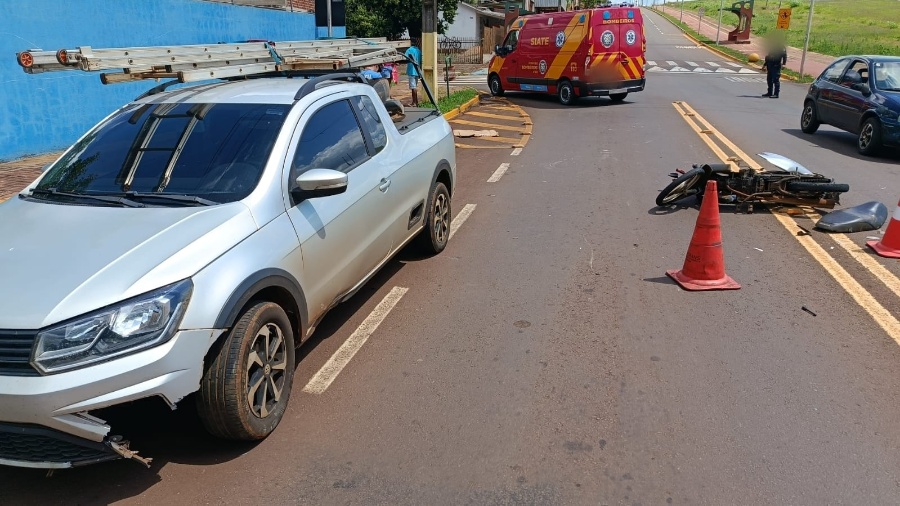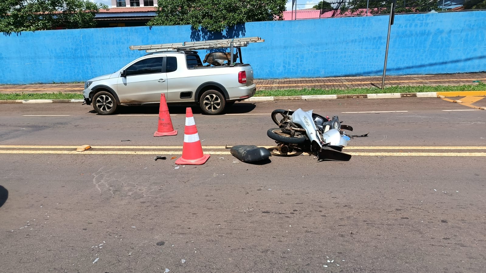A colisão envolveu uma motocicleta Honda Biz 125, conduzida por um homem de 30 anos, e uma picape Volkswagen Saveiro.