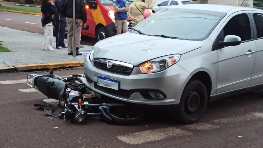 Segundo apurado no local pela equipe do Plantão Toledo, um Fiat Siena, dirigido por uma mulher, colidiu com uma moto Suzuki de 125cc, pilotada por um homem de 47 anos. O motociclista, que seguia pela Carlos Barbosa, foi atingido pelo carro que vinha pela rua Santo Campagnolo.