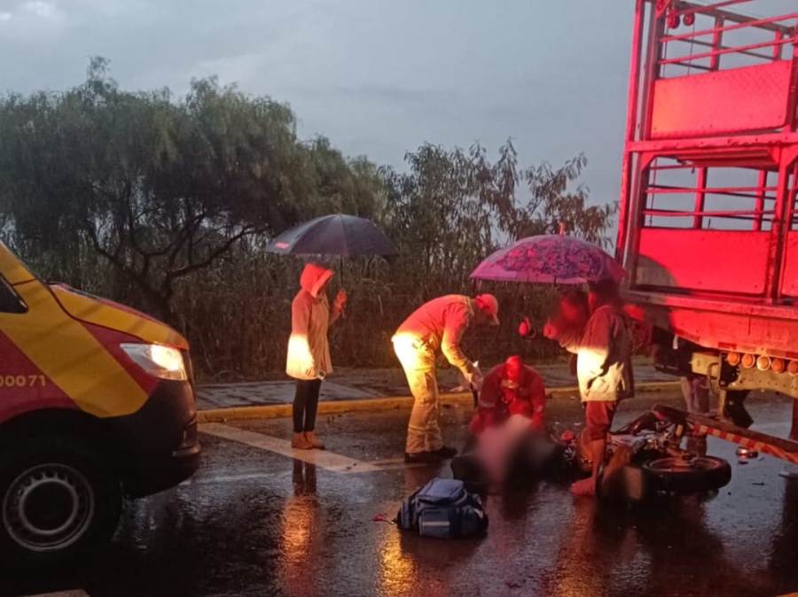 Conforme as informações, a mulher conduzia uma moto Honda Twister pela Rua Albino Scariot, quando próximo ao cruzamento com a Rua Abel Batista de Freitas, acabou colidindo violentamente na traseira de um caminhão Scania porcadeiro, que estava estacionado.
