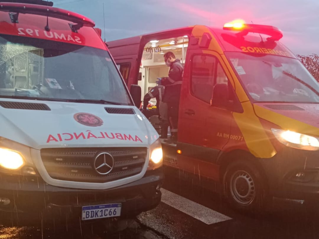 Equipes do Corpo de Bombeiros e SAMU foram mobilizadas para prestar socorro à mulher, de 40 anos. Com ferimentos graves, ela foi encaminhada para um hospital da cidade.