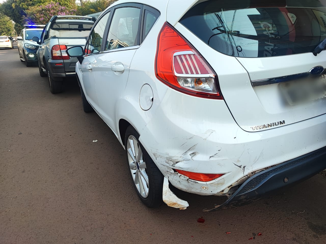 O acidente ocorreu por volta das 14h30 desta sexta-feira, quando um Ford Ka colidiu com três veículos estacionados.