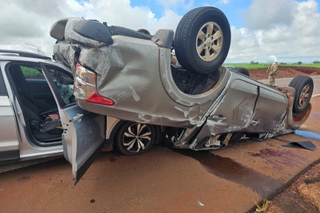 Após colidir com uma placa de sinalização na esquina da Rua Leonir Giareta, por volta das 00h20, o condutor de um Citröen C3 prata tentou fugir a pé, mas foi detido pela Polícia Militar (PM).