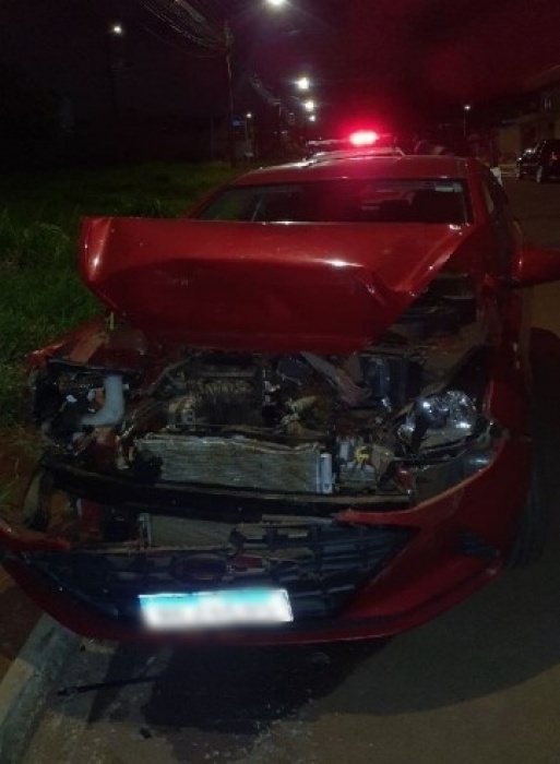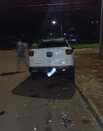 Conforme a Guarda Municipal, que atendeu ao acidente, um veículo Hyundai HB20, de cor vermelha, colidiu com uma camionete Fiat Toro, que estava estacionada.