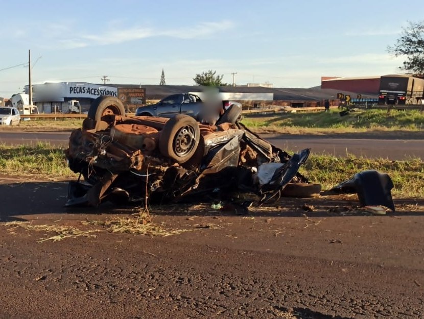 Um jovem de 26 anos ficou estado grave após ser ejetado de seu veículo em um capotamento na BR-163 em Toledo na tarde desta segunda-feira (10).