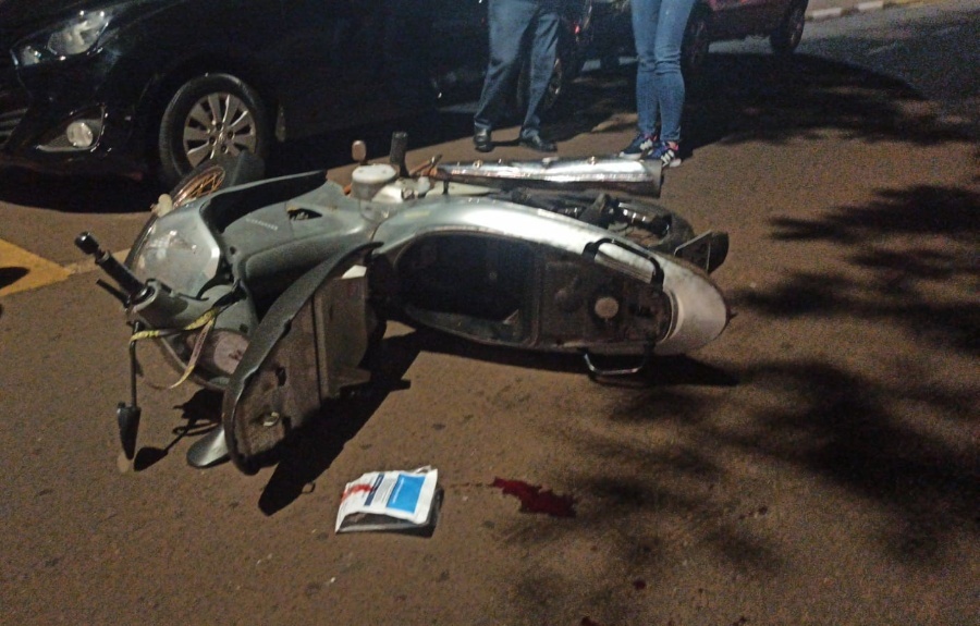 Uma motociclista de 43 anos sofreu fratura na clavícula e ferimentos no pé após colidir com a porta de um carro na noite desta terça-feira (02), na Rua Carlos Barbosa, na Vila Industrial, em Toledo.